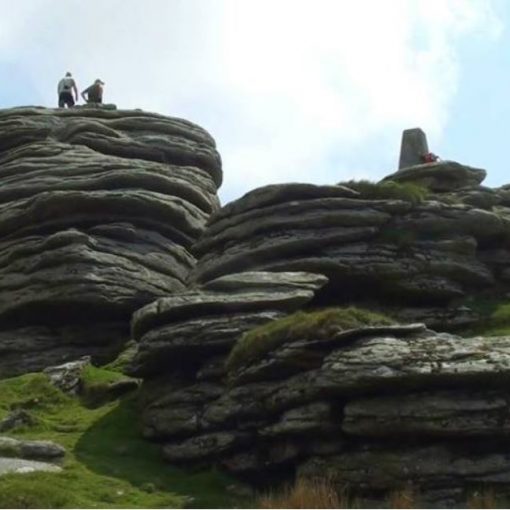 It was a lengthy featureless climb to the trig point, and although there was a lot of water around, for the most part the ground was surprisingly firm for Dartmoor, and the trig point was surrounded by a moat of water, so we didn’t even get to touch it for luck. And from here we headed south-west towards Shell Top. Shell Top was a small rocky outcrop, with stunning views of the quarry.