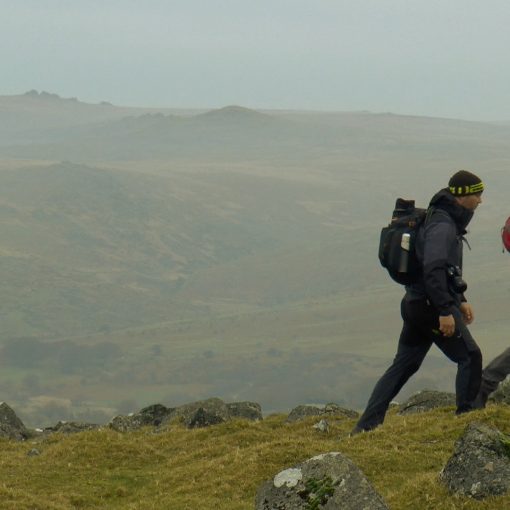 8. Now the most lengthy and arduous walk of the day, between Devil’s Tor and Beardown Tors. This is a two-mile trek across ankle length tussocky terrain, so it is not only featureless and laborious but very hard going. There are two tors that we walk between here, Crow Tor on the left, and Lydford Tor on the right that you may choose to incorporate, but we didn’t take either of these tors in.
